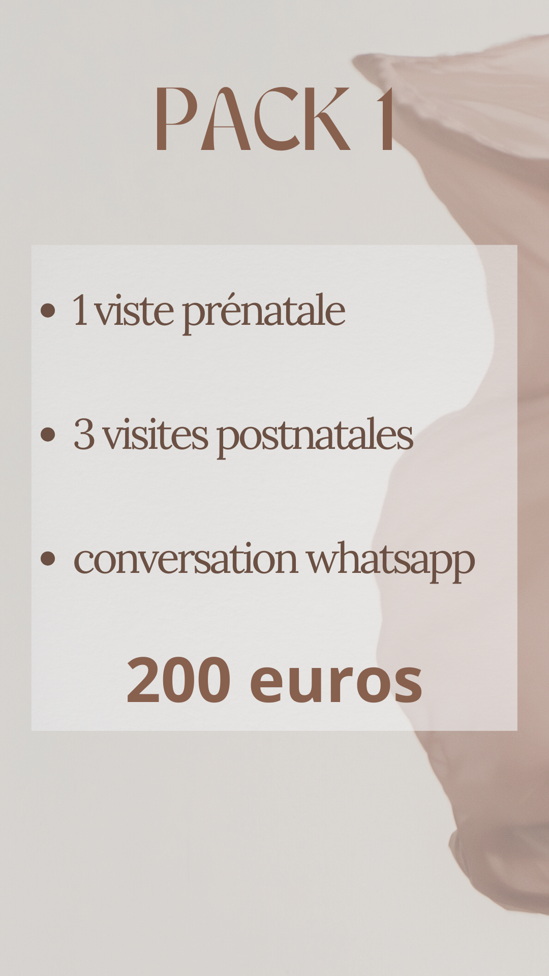 - La visite prénatale d’une durée de 1h30. Ce moment sera l’occasion de nous rencontrer et d’aborder ensemble les essentiels pour votre bébé, votre projet de naissance, ainsi que la fréquence des visites postnatales que vous désirez.